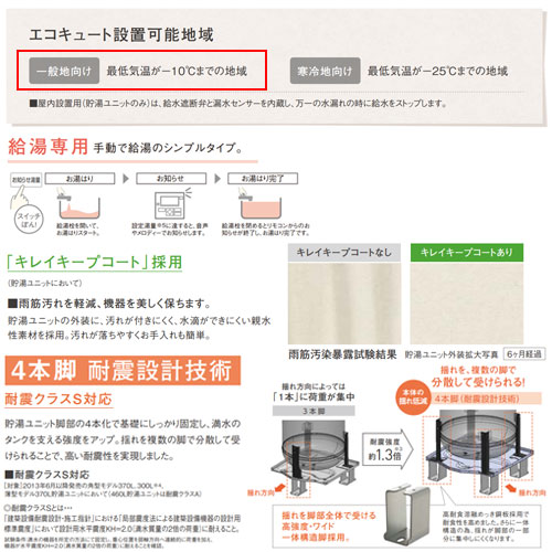 ♪【10年保証付】【工事費込】エコキュート[台所リモコン付属][給湯専用][370L][Jシリーズ][一般地][スマイル10]