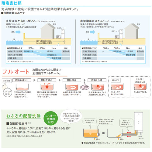 耐塩害仕様で海浜地域の住宅にも設置可能。