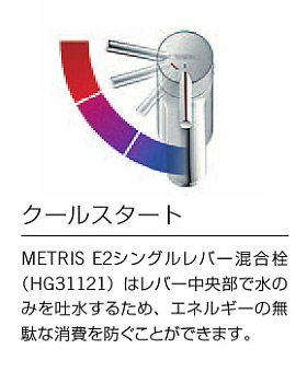 ・レバー中央部で水のみを吐水するため、エネルギーの無駄な消費を防ぐことができる、クールスタート仕様です