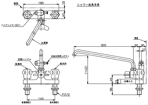 シャワー金具[MKS][2バルブ][シャワーハンガー2個付][寒冷地][壁貫通タイプ][給湯器部材]