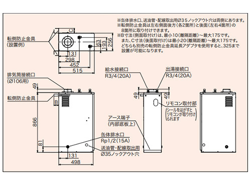 ※減圧弁、逃し弁、Φ106排気筒セット、リモコンコード、配管部材、油タンク等は別売です。