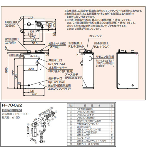 ・うす型給排気筒セット(FF-70-092)