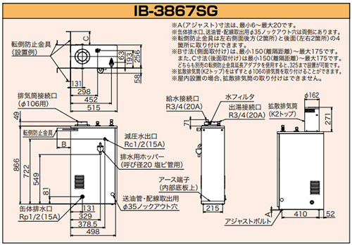 ※Φ106排気筒セット、据置架台、配管部材、油タンク、リモコンコード等は別売です。