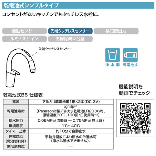 ・付属品:浄水カートリッジ(JF-45N)、浄水ホース、取付ブラケット、接続プラグ、アルカリ電池単1形2本
