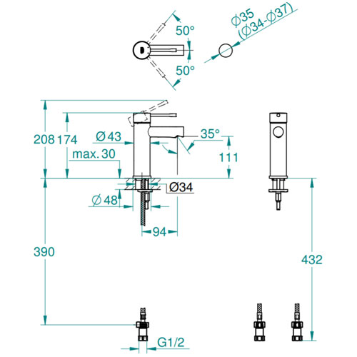 ・水栓取付穴径:φ35(φ34-φ37)