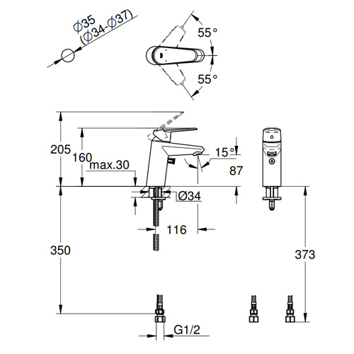 ●洗面用蛇口 ユーロディスクコスモポリタン[台][シングルレバー洗面混合水栓][クローム][引棒なし][寒冷地]