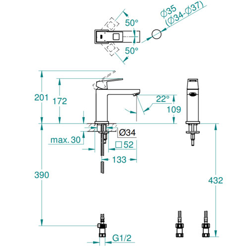 ・水栓取付穴径:φ35(φ34-φ37)