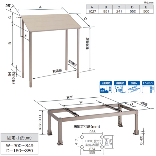 防雪架台セット[平置台][高さ300mm][アルミ][防雪板][ヒートポンプユニット用][エコキュート部材]