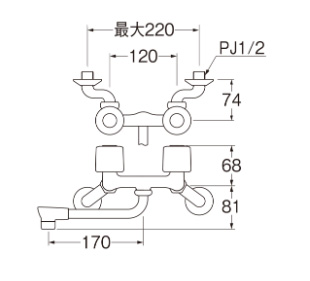 キッチン用蛇口[壁][2ハンドル混合水栓][スパウト170mm][一般地寒冷地共用]