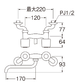 キッチン用蛇口[壁][2ハンドル混合水栓][スパウト170mm][一般地寒冷地共用]