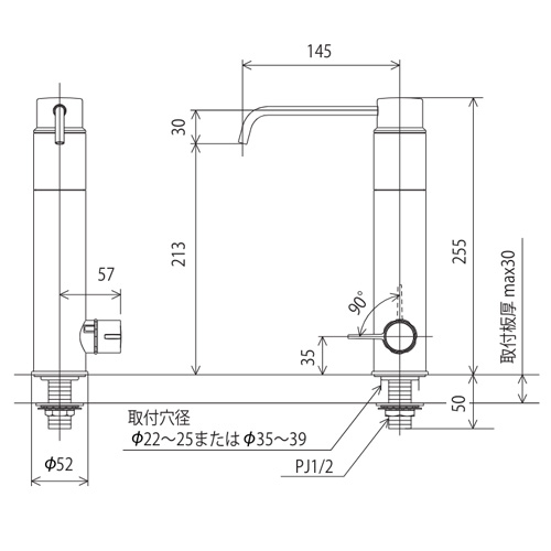 ・取付穴径:φ22〜φ25/φ35〜φ39