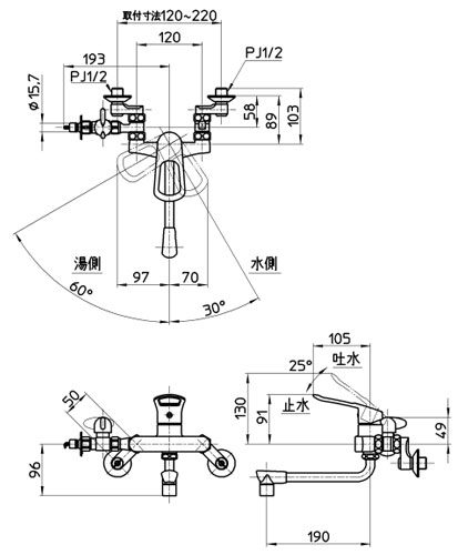 キッチン用蛇口[壁][シングル分岐混合水栓][プラスエコ][整流][スパウト190mm][寒冷地]