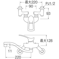 キッチン用蛇口[壁][シングルレバー混合水栓][エコ位置クリック][スパウト220mm][寒冷地]