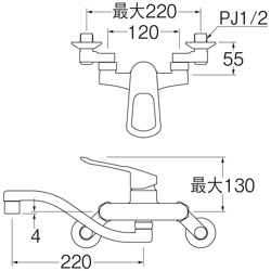 キッチン用蛇口[壁][シングルレバー混合水栓][エコ位置クリック][スパウト220mm][寒冷地]