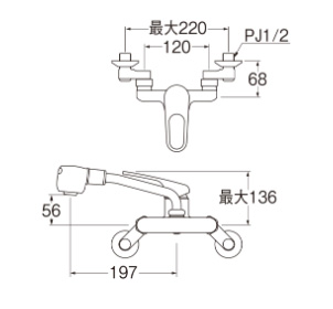 キッチン用蛇口[壁][シングルレバー混合水栓][スパウト197mm][寒冷地]
