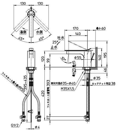 洗面用蛇口 SUTTO[台][シングルレバー混合水栓][泡沫][ポップアップ式][スパウト170mm][引棒付][寒冷地]