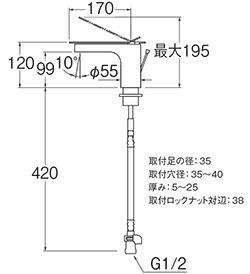 ●洗面用蛇口 SUTTO[台][シングルレバー混合水栓][スパウト170mm][泡沫][ポップアップ式][引棒付][マットブラック][一般地]