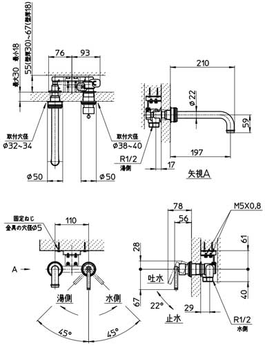 ・吐水口長さ:210mm