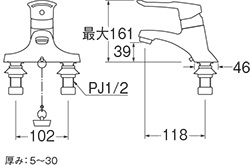 洗面用蛇口[台][シングルレバー混合水栓][エコ位置クリック][スパウト118mm][泡沫][ゴム栓付][一般地]