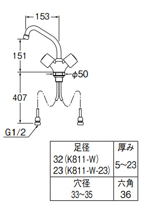 K811-W|SANEI|キッチン用蛇口[台][2ハンドル混合水栓][スパウト153mm][一般地]|リフォームネクスト
