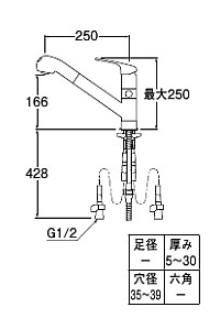 キッチン用蛇口[台][シングルレバー混合水栓][ホース引出][分岐口付][スパウト250mm][一般地]