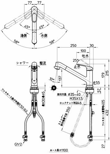 ・吐水口長さ:250mm
