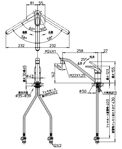 ・吐水口:258mm