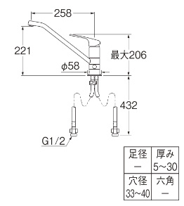 ・吐水口:258mm