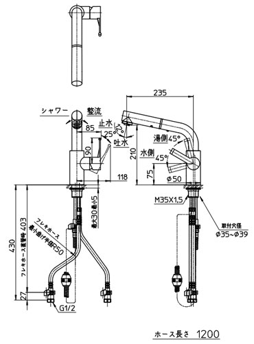 ・ホース引出し長さ:1.2m