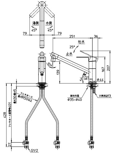 ・吐水口:251mm
