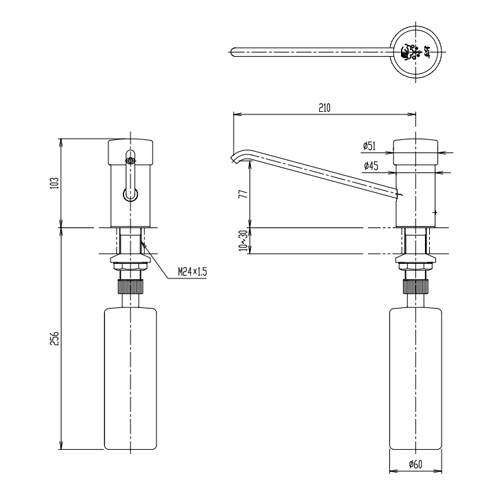 水石けん入れ[台][カウンター取付用][ムース状][スパウト210mm]