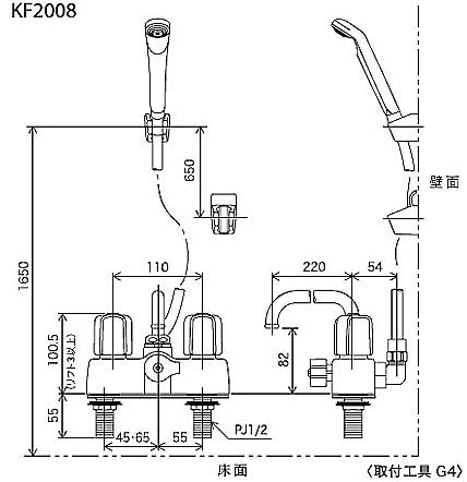 浴室用蛇口 KF2008シリーズ[台][浴槽・洗い場兼用][シャワーバス付2ハンドル混合水栓][可変ピッチ式][首長220mm][固定こま][寒冷地]