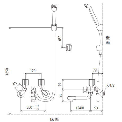 浴室用蛇口[壁][2ハンドルシャワー][240mmパイプ付][一般地]