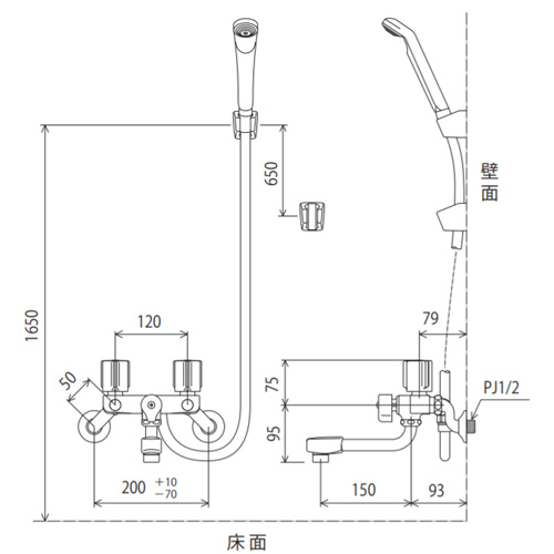 浴室用蛇口[壁][2ハンドルシャワー][150mmパイプ付][一般地]