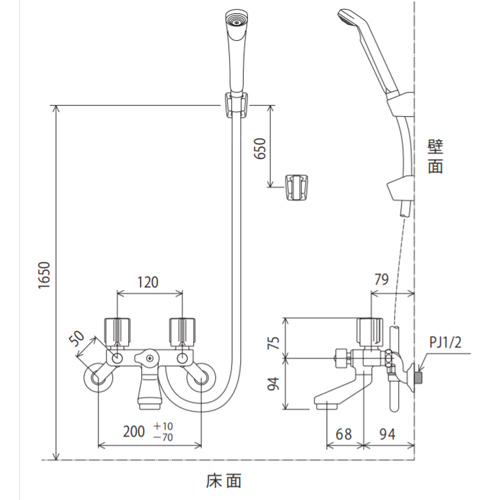 浴室用蛇口[壁][2ハンドルシャワー][一般地]