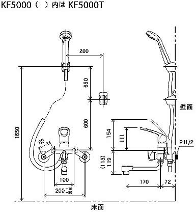 KF5000ZT|KVK|浴室用蛇口[壁][浴槽・洗い場兼用][シングルレバー式シャワー][KF5000Tシリーズ][寒冷地]|リフォームネクスト