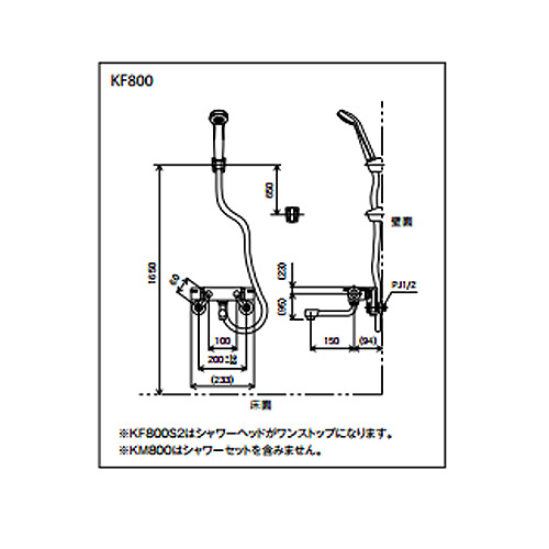 KF800|KVK|【SALE】浴室用蛇口[壁][浴槽・洗い場兼用][KF800シリーズ][サーモスタット付シャワーバス混合水栓][めっき仕様][一般地]|リフォームネクスト