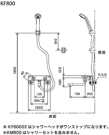 KF800R2|KVK|浴室用蛇口[壁][浴槽・洗い場兼用][KF800シリーズ][サーモスタット付シャワーバス混合水栓][めっき仕様][一般地]|リフォームネクスト