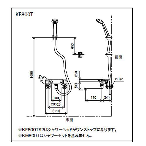 KF800T|KVK|【SALE】浴室用蛇口[壁][浴槽・洗い場兼用][KF800Tシリーズ][サーモスタット付シャワーバス混合水栓][めっき仕様][一般地]|リフォームネクスト