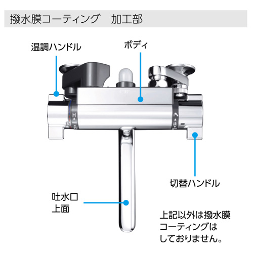 撥水パワーサーモ:水栓に水アカや汚れが付きにくく拭きやすい!!