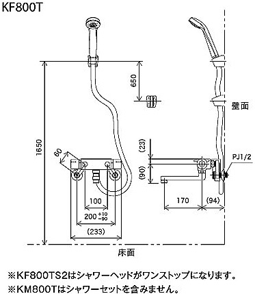 浴室用蛇口[壁][浴槽・洗い場兼用][KF800Tシリーズ][サーモスタット付シャワーバス混合水栓][めっき仕様][一般地]