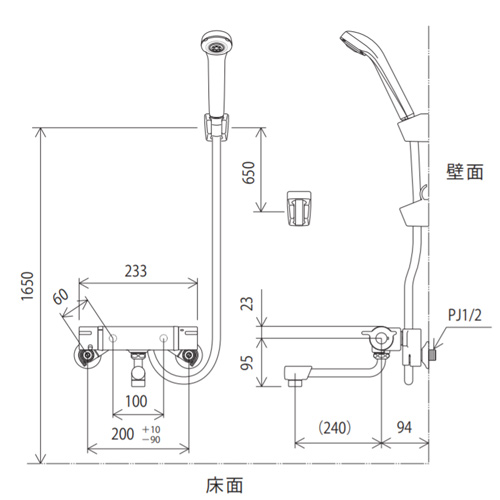浴室用蛇口[壁][サーモスタット付シャワー][240mmパイプ付][ホワイト][一般地]