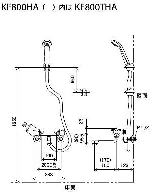 浴室用蛇口[壁][浴槽・洗い場兼用][KF800HAシリーズ][サーモスタット付シャワーバス混合水栓][めっき仕様][一般地]