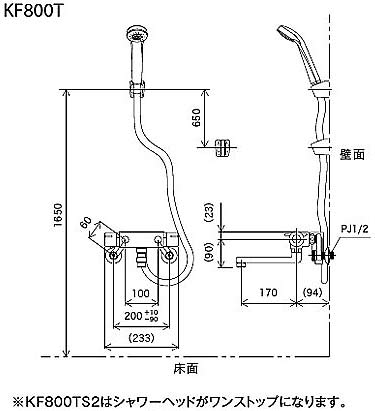 浴室用蛇口[壁][浴槽・洗い場兼用][KF800Tシリーズ][サーモスタット付シャワーバス混合水栓][めっき仕様][一般地]