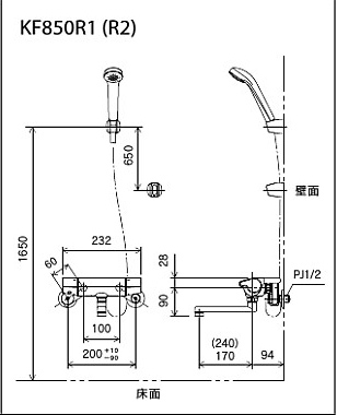 浴室用蛇口 KF850シリーズ[壁][浴槽・洗い場兼用][サーモスタット付シャワーバス混合水栓][eシャワーNF][170mmパイプ付][一般地]