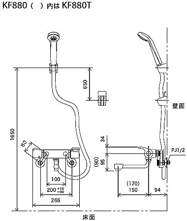 浴室用蛇口[壁][浴槽・洗い場兼用][KF880シリーズ][サーモスタット付シャワーバス混合水栓][めっき仕様][一般地]