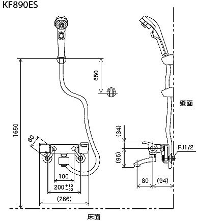 KF890ES|KVK|浴室用蛇口[壁][洗い場専用][KF890シリーズ][サーモスタット付シャワーバス混合水栓][めっき仕様][一般地]|リフォームネクスト