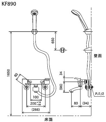 KF890S2|KVK|浴室用蛇口[壁][洗い場専用][KF890シリーズ][サーモスタット付シャワーバス混合水栓][めっき仕様][一般地]|リフォームネクスト