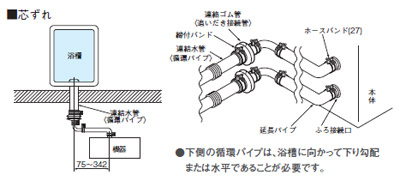 浴槽隣接設置の浴槽の循環パイプと給湯器本体がずれた場合でも、配管延長が可能です。