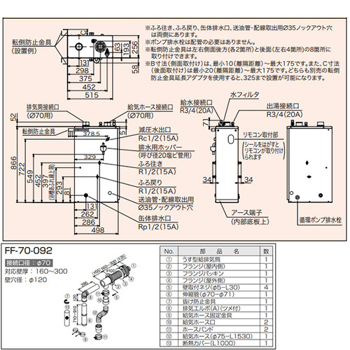 ・うす型給排気筒セット(FF-70-092)